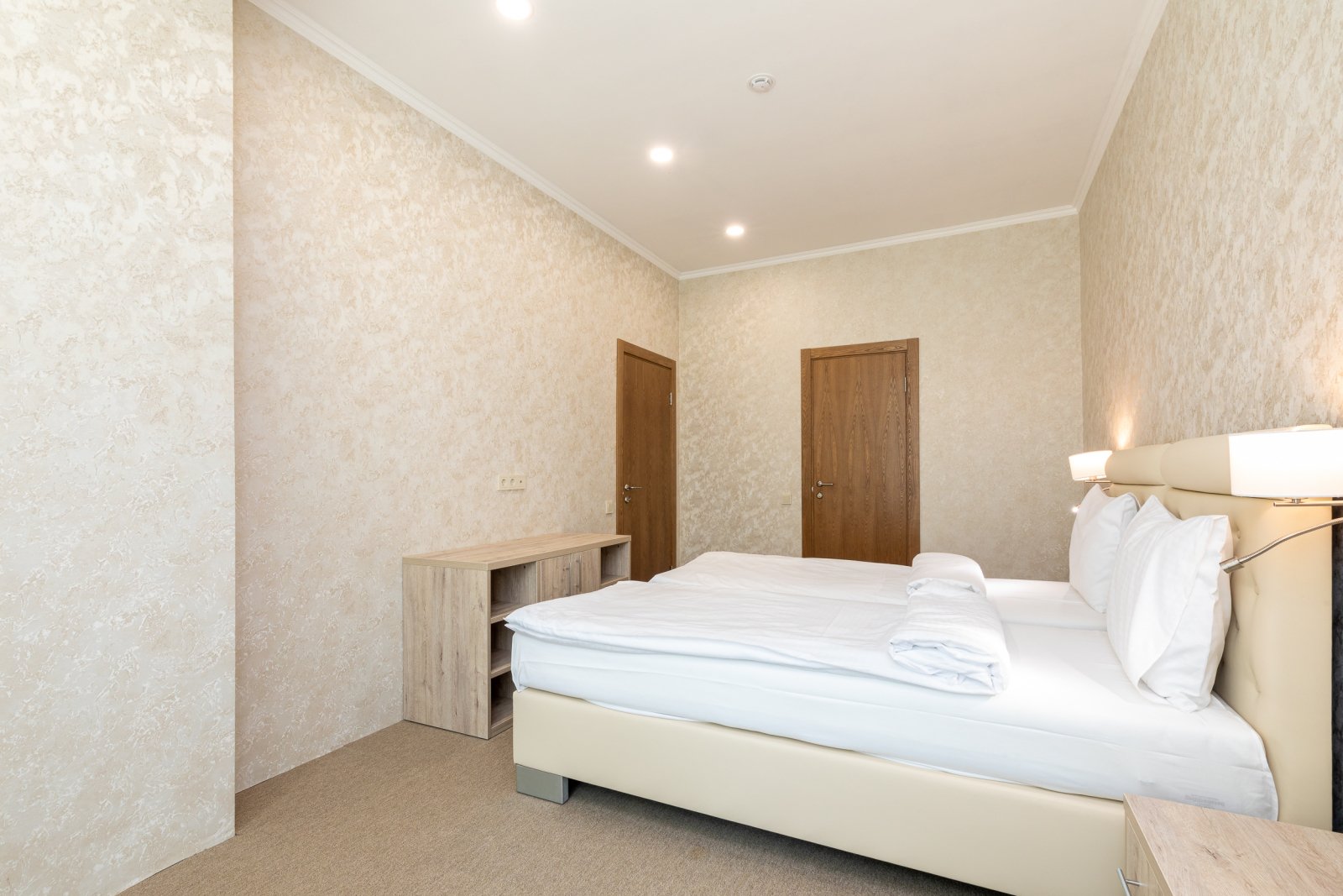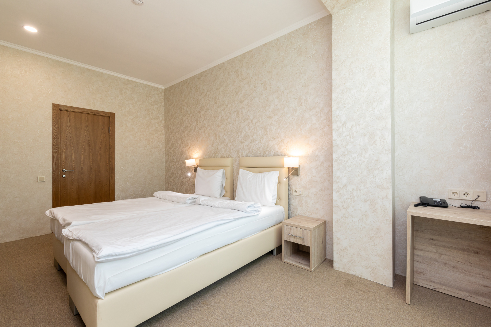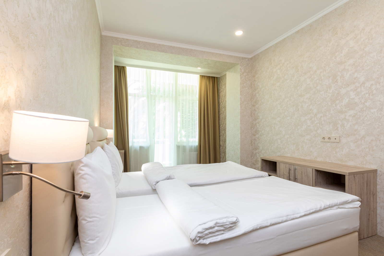Площадь номера - 30 кв.м. 2 осн. места. 3 доп. места. Балкон. Мебель: вешалка, зеркало, кровати односпальные (2), кровать двуспальная, прикроватные тумбочки, стол, стул, шкаф. Оборудование: кондиционер, сейф, телевизор, телефон, холодильник. Санузел: с душем, тапочки, туалетные принадлежности, фен, халат. Сервис: Wi-Fi бесплатно, смена полотенец, смена постельного белья, уборка номера.