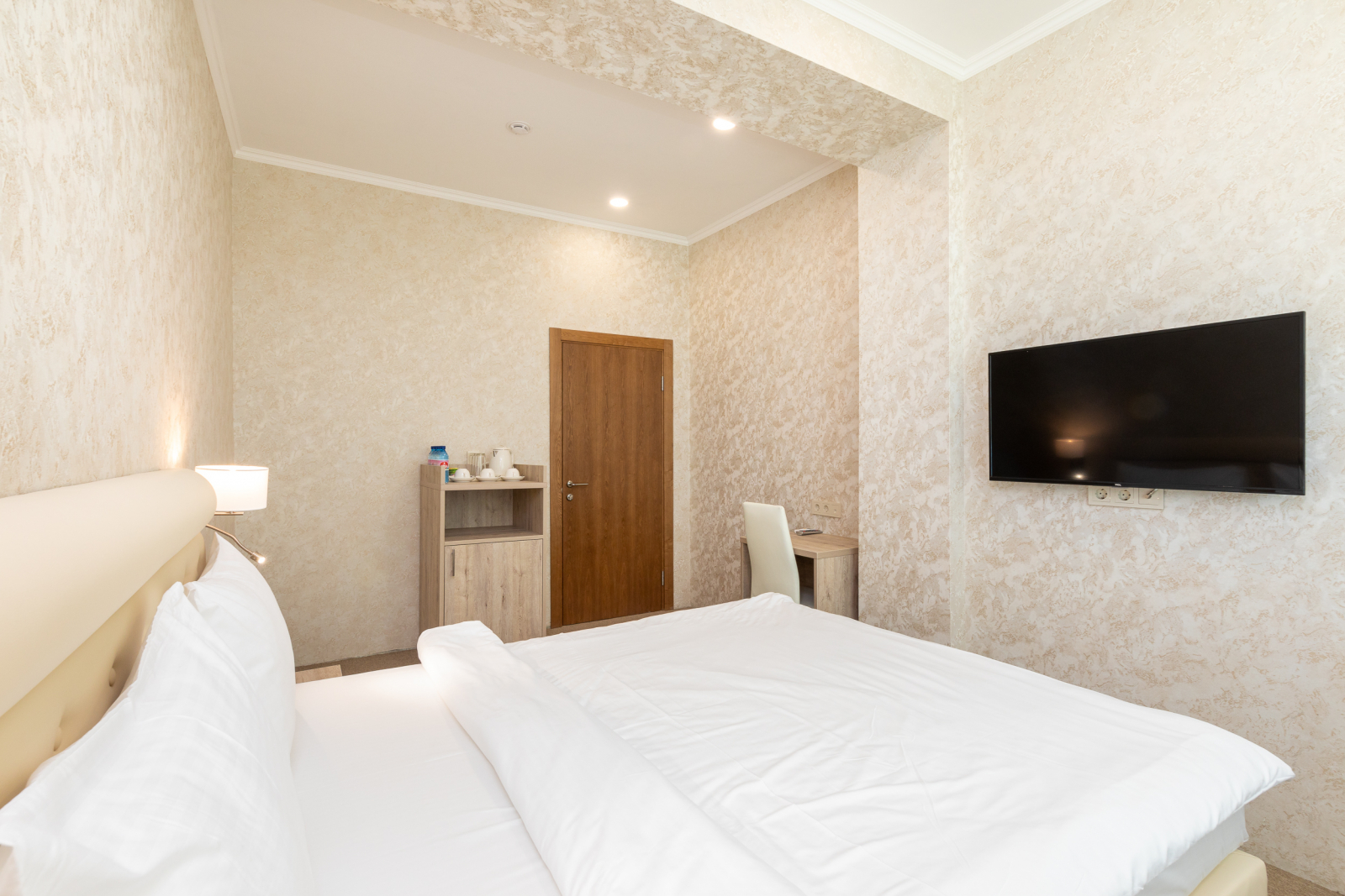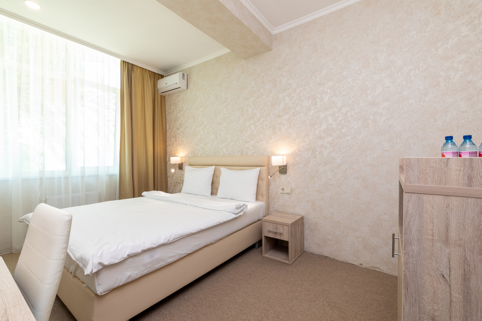 Площадь номера - 30 кв.м. 2 осн. места. 2 доп. места. Мебель: вешалка, зеркало, кровати односпальные (2), кровать двуспальная, прикроватные тумбочки, стол, стул, шкаф. Оборудование: кондиционер, сейф, телевизор, холодильник. Санузел: с душем, тапочки, туалетные принадлежности, фен, халат. Сервис: Wi-Fi бесплатно, смена полотенец, смена постельного белья, уборка номера.