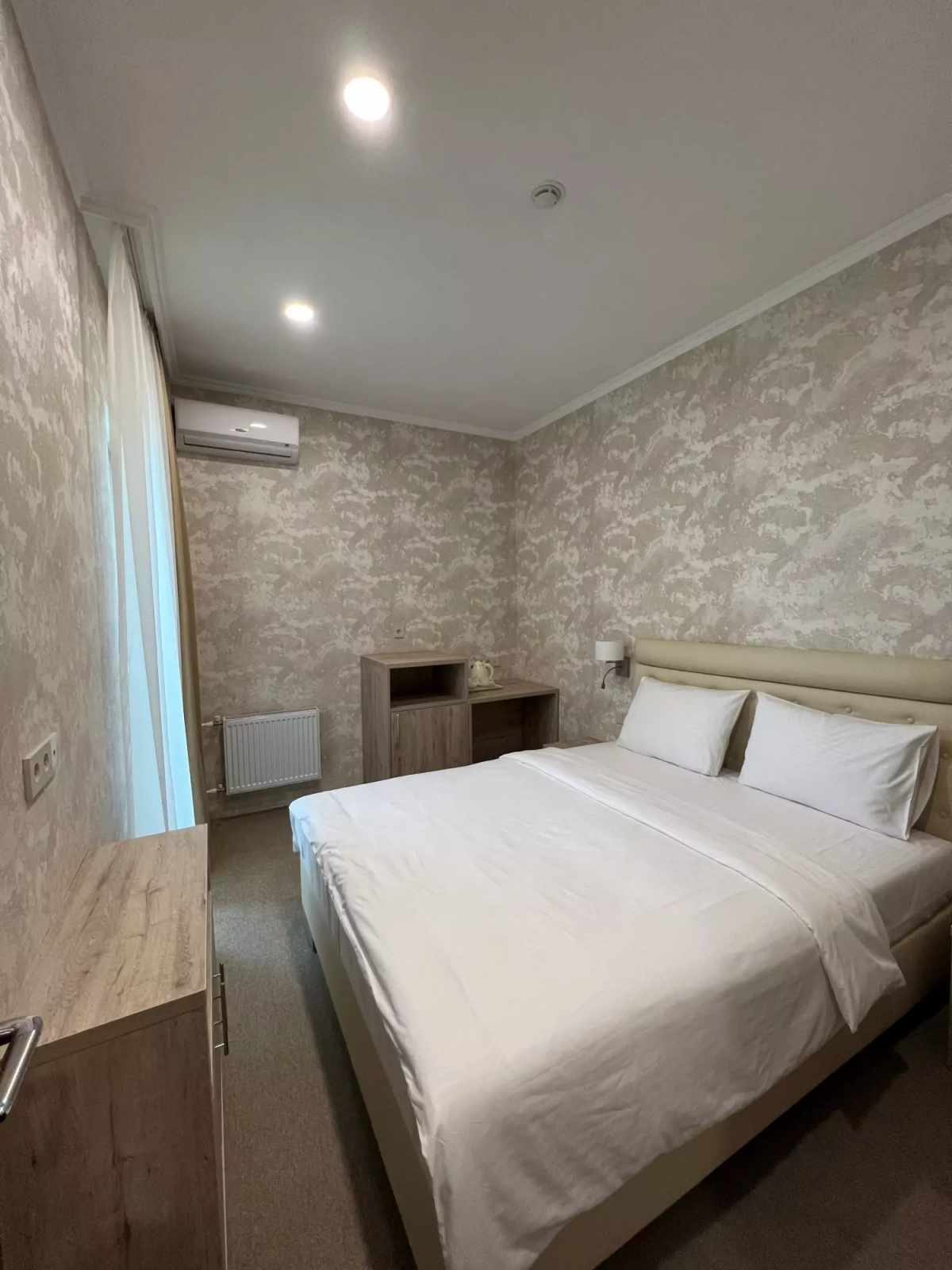Площадь номера - 30 кв.м. 2 осн. места. 2 доп. места. Балкон. Мебель: вешалка, зеркало, кровати односпальные (2), кровать двуспальная, прикроватные тумбочки, стол, стул, шкаф. Оборудование: кондиционер, сейф, телевизор, телефон, холодильник. Санузел: с душем, тапочки, туалетные принадлежности, фен, халат. Сервис: Wi-Fi бесплатно, смена полотенец, смена постельного белья, уборка номера.